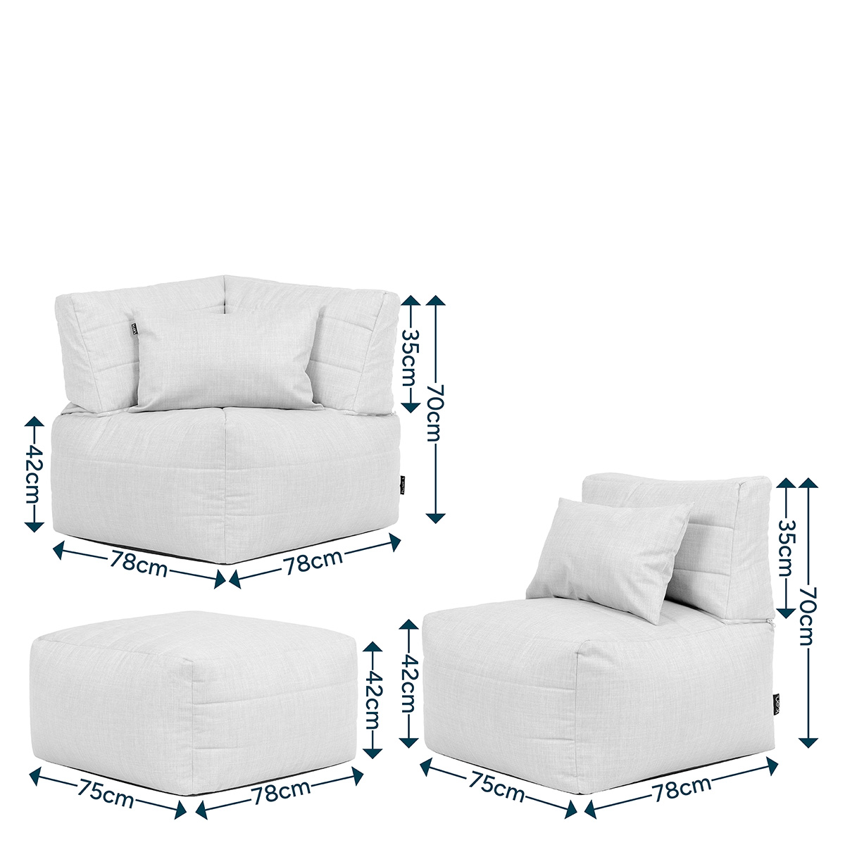 QUALITY THAT LASTS: Made with OEKO-TEX® certified fabric that meets strict safety standards. Built for durability and long term comfort. Dimensions: Corner: W/78cm, D/78cm, H/79cm, Chair: W/75cm, D/78cm, H/79cm.